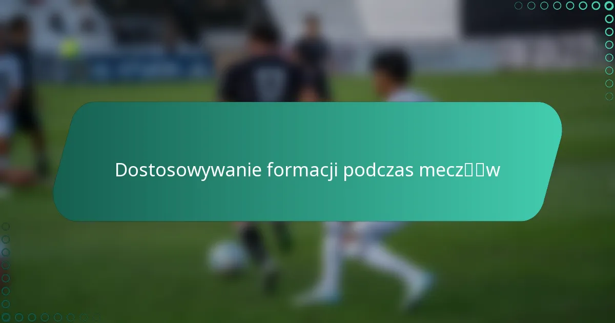 Zespoły dostosowują formacje podczas meczów, aby reagować na zmieniającą się dynamikę, taką jak strategie przeciwnika lub wydajność zawodników. Elastyczność jest kluczowa dla utrzymania przewagi konkurencyjnej i zapewnienia skutecznej gry.